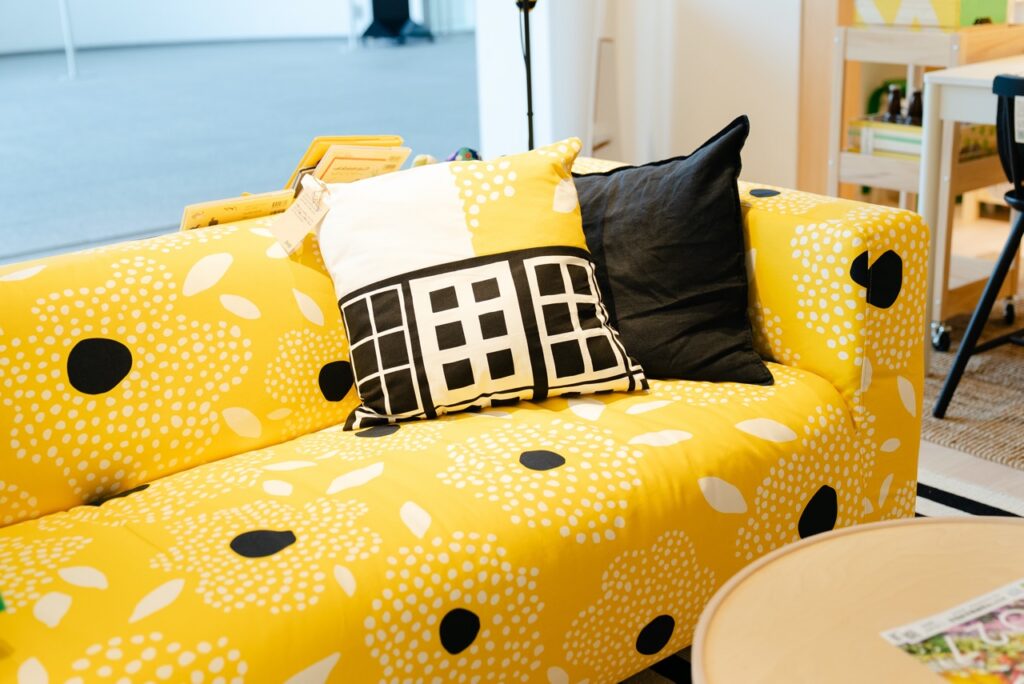 カバーを取り外して洗えるイケアのソファ。もし汚れてもカバーを洗濯または交換するだけで、廃棄することなく長く使い続けることができる。STYLE#019「北欧から地球にやさしい暮らしを学ぼう(前編)」で紹介しています。