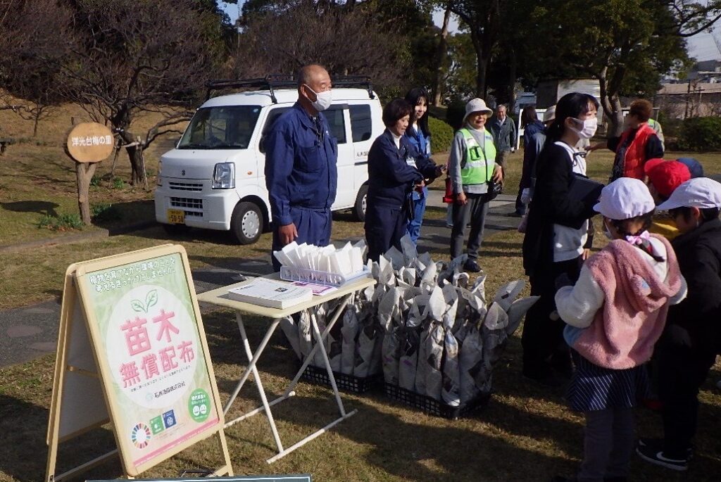 石井造園ではみどりを慈しむ心を育むことを目的として、神奈川県内各地で苗木の無償配布を行っている。配布数は年間2500本近くにもなるそう。
