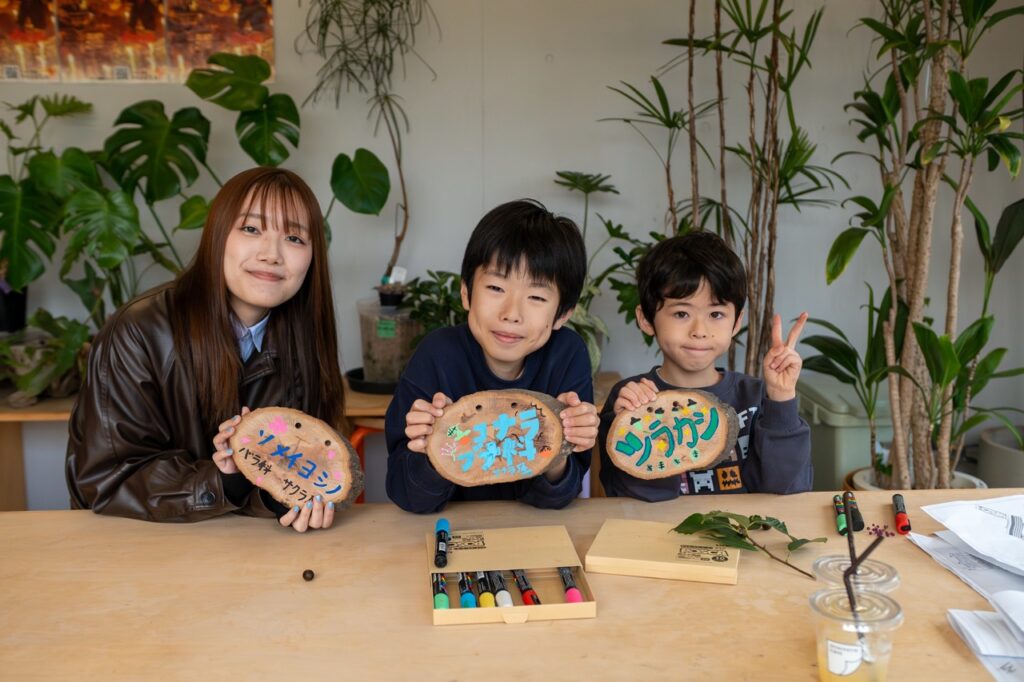 これまでにも様々なワークショップに参加しているという兄弟。保護者の方に聞くと、「普段から利用している公園の木々について学べるのはありがたいです。ここで石井社長から教えてもらった知識を、家でも友達にも嬉しそうに話していて、しっかり身についていると感じています」と話してくれました。