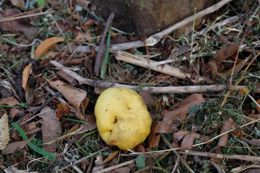 こちらは落ちていたカリンの実。「車の中にひとつ置いておくと甘い香りが広がりますよ」と石井さん。