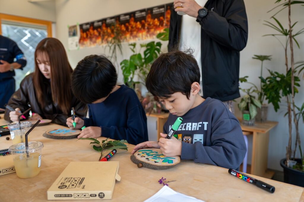 これまでにも様々なワークショップに参加しているという兄弟。保護者の方に聞くと、「普段から利用している公園の木々について学べるのはありがたいです。ここで石井社長から教えてもらった知識を、家でも友達にも嬉しそうに話していて、しっかり身についていると感じています」と話してくれました。